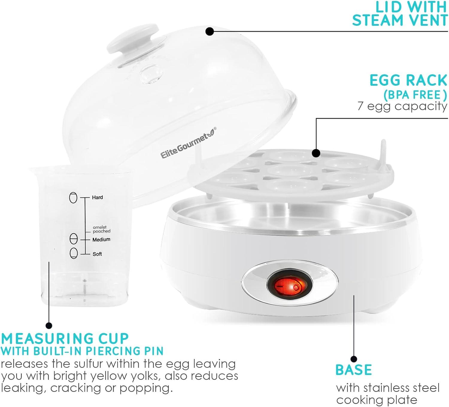 VERSATILITY: Whether pairing with avocado toast or preparing deviled eggs, the Elite Gourmet 2-Tiered Easy Egg Cooker is an all-in-one egg boiler, poacher & omelet maker as well as veggie or food steamer, and more!
